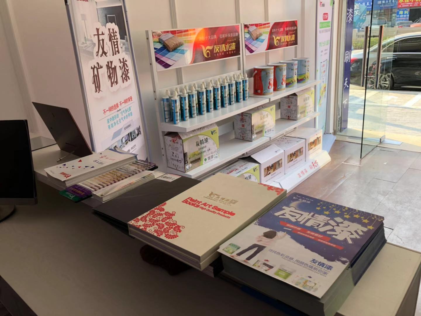 友情漆曲江油漆代理店產品陳列區之一