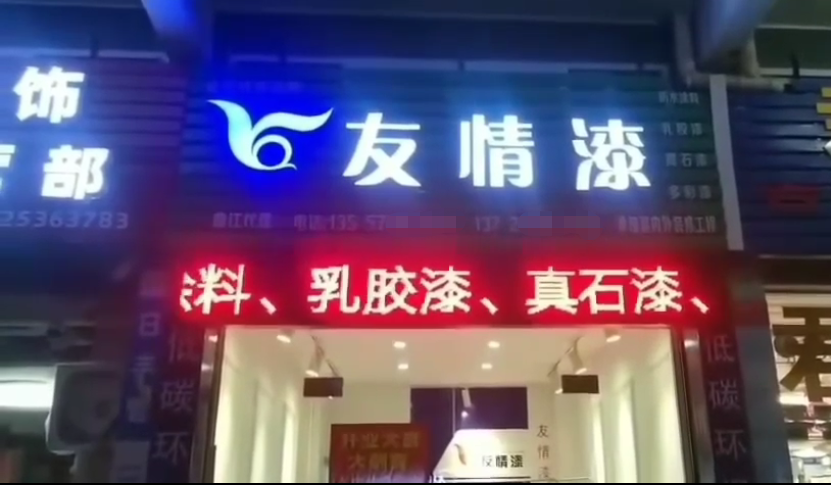 友情漆曲江油漆代理店發光招牌