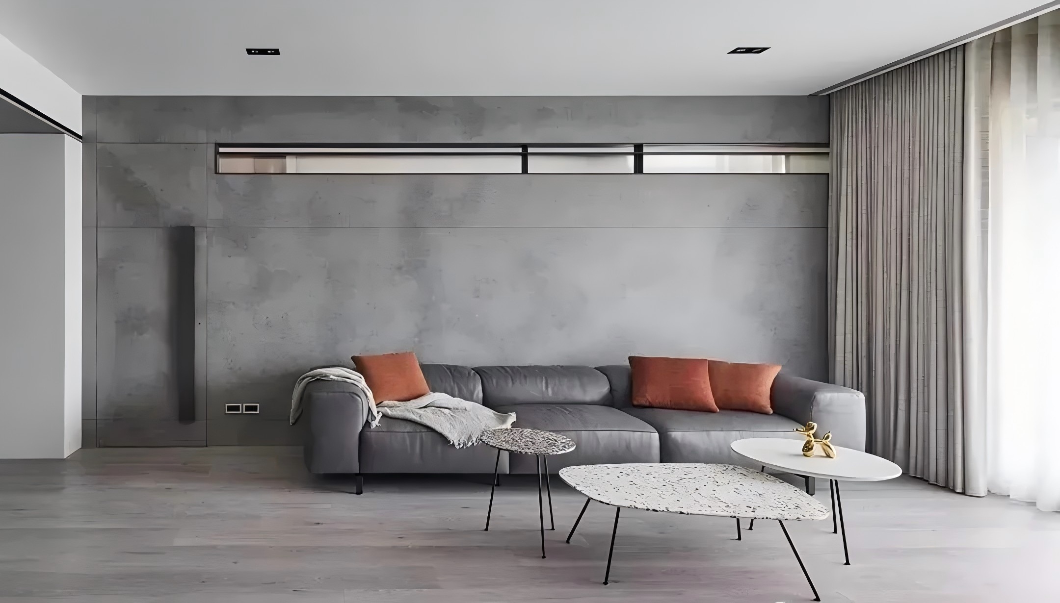 藝術(shù)漆中的清水混凝土,也叫清水泥,可以在多種不同的基面上施工,打造出一種質(zhì)樸自然的高級(jí)墻面裝飾效果,表面非常光滑,棱角分明,不作任何花哨裝飾,只是在表面涂一層或兩層透明的保護(hù)劑,顯得十分天然、莊重。