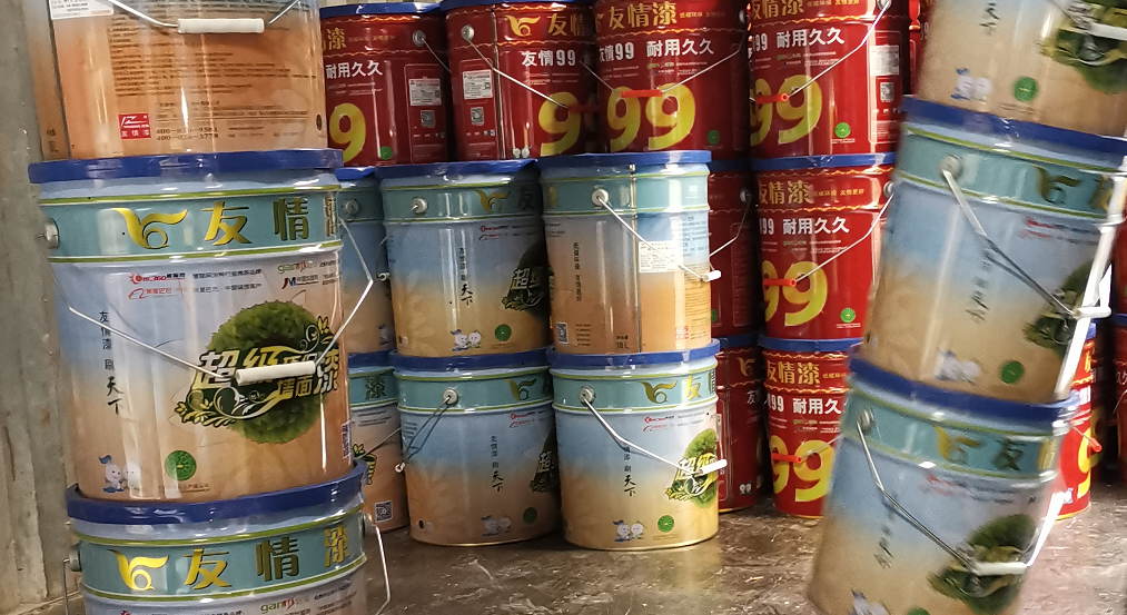 大量裝車發往全國各地的乳膠漆產品